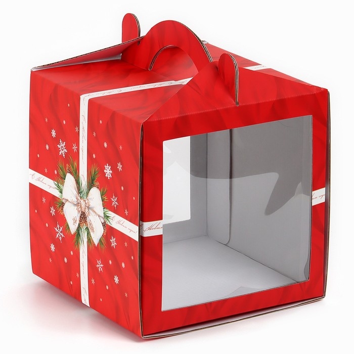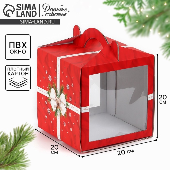 Коробка кондитерская с окном, сундук, «С Новым годом!», 20 х 20 х 20 см,