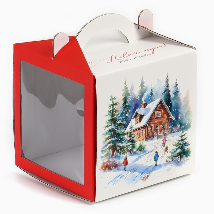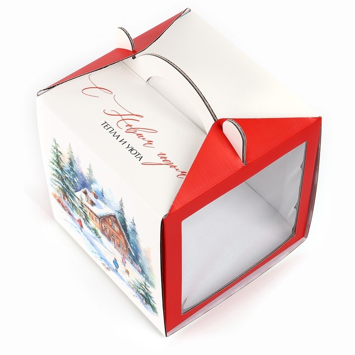 Коробка кондитерская с окном, сундук, «Тепла и уюта», 20 х 20 х 20 см, Новый год