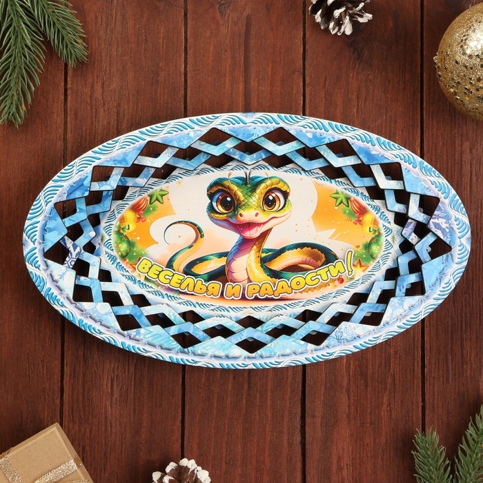 Тарелка конфетница овальная "Символ года 2025.Веселья и радости"