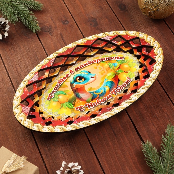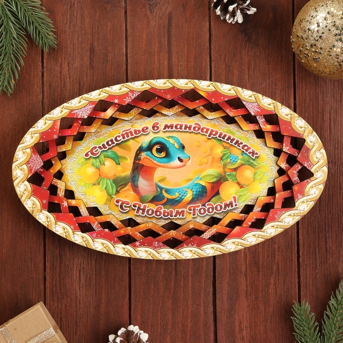 Тарелка конфетница овальная "Символ года 2025.Счастье в мандаринках"