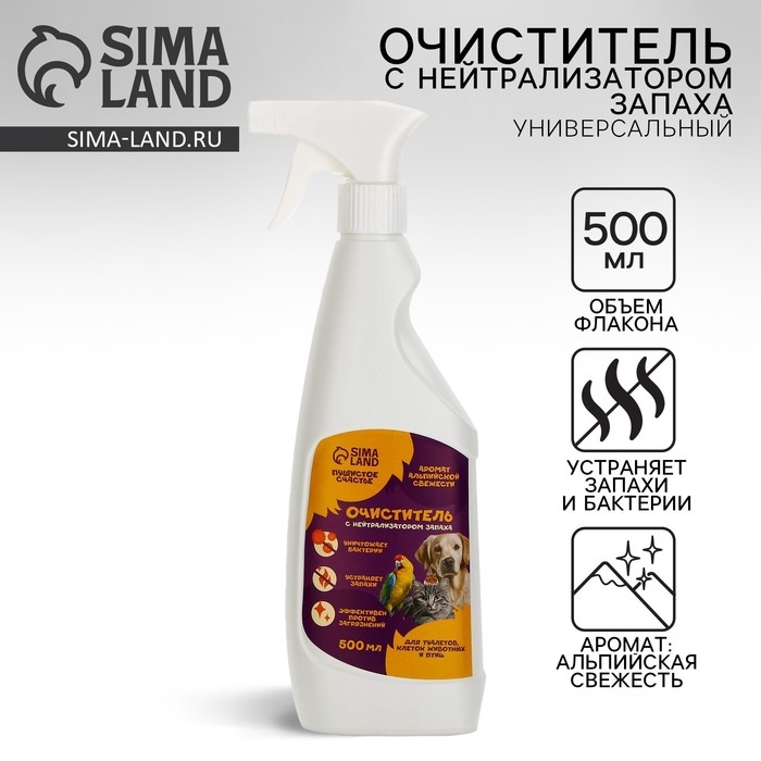 Очиститель с нейтрализатором запаха. Универсальный поглотитель запаха для туалетов, клеток животных и птиц «Пушистое счастье», 500 мл