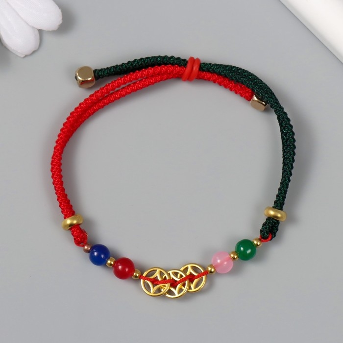 Браслет фен-шуй "Три золотых монетки" регулируемая длина