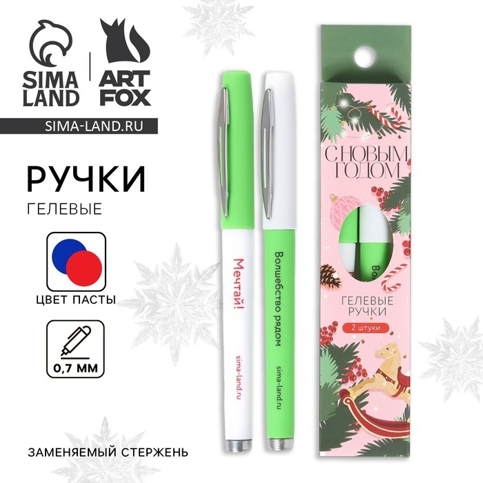 Ручка гелевая «Новый год: С Новым годом», 2 шт., синяя и красная паста