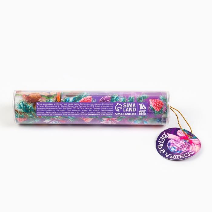 Ручка шариковая в тубусе «Новый год: Верь в чудеса», пластик, 1мм