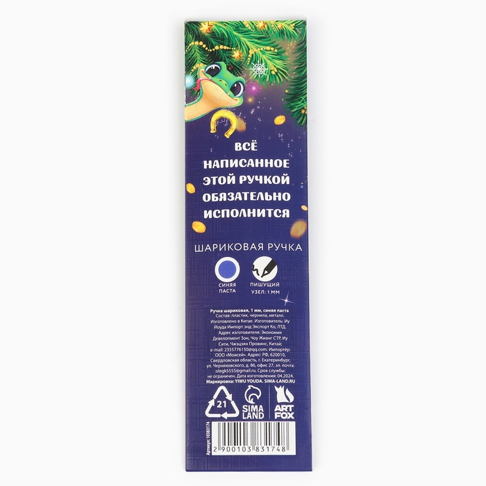 Ручка шариковая «Новый год: Привлекаю деньги» пластик в конверте, 1 мм