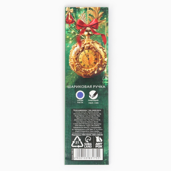 Ручка шариковая «Новый год: С новым годом» пластик в конверте, 1 мм