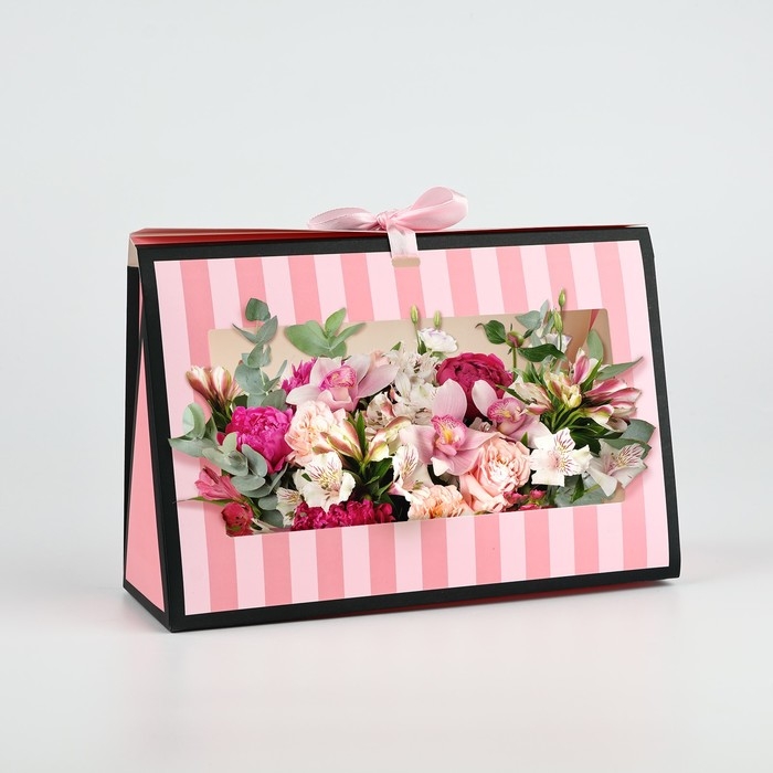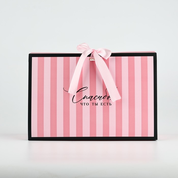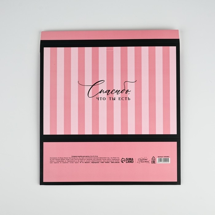 Складная коробка для цветов с окном «Спасибо, что ты есть», розовая, 16 х 27 х 9 см