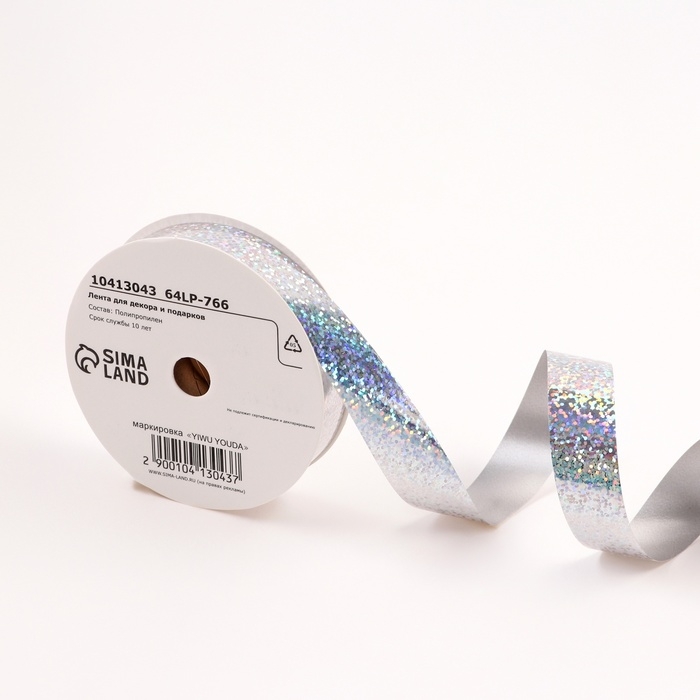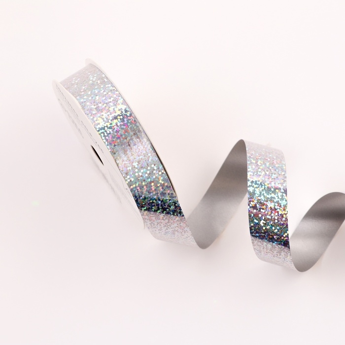 Лента голографическая для декора и подарков, серебро, 2 см х 50 м