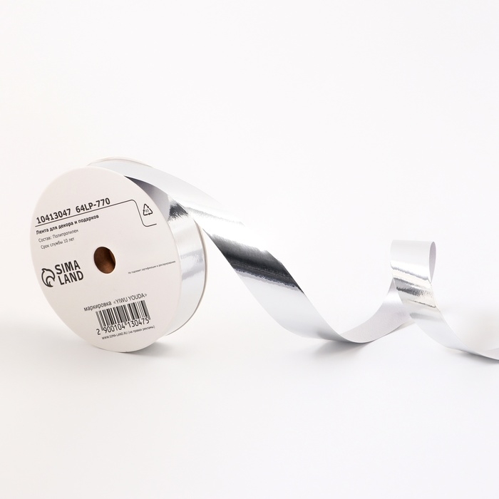 Лента для декора и подарков, "Металлик", серебро, 2 см х 50 м