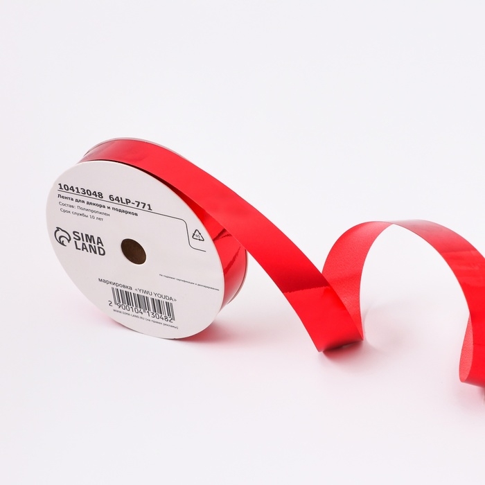 Лента для декора и подарков, "Металлик", красный, 2 см х 50 м