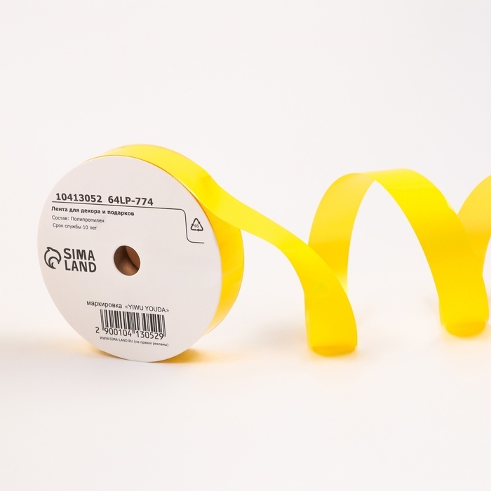 Лента для декора и подарков, "Глянец", желтый, 2 см х 50 м