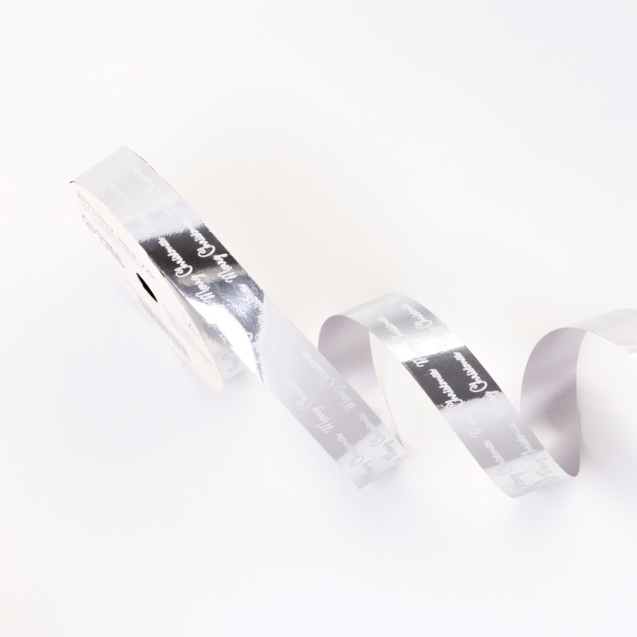 Новый год. Лента для декора и подарков новогодняя, "С рождеством", серебро, 2 см х 50 м.