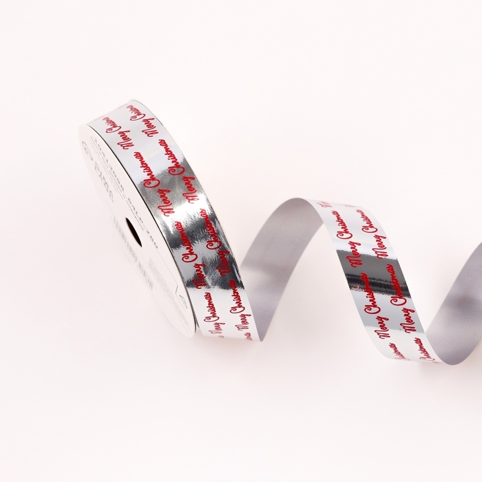 Новый год. Лента для декора и подарков новогодняя, "С рождеством", красная, 2 см х 50 м.