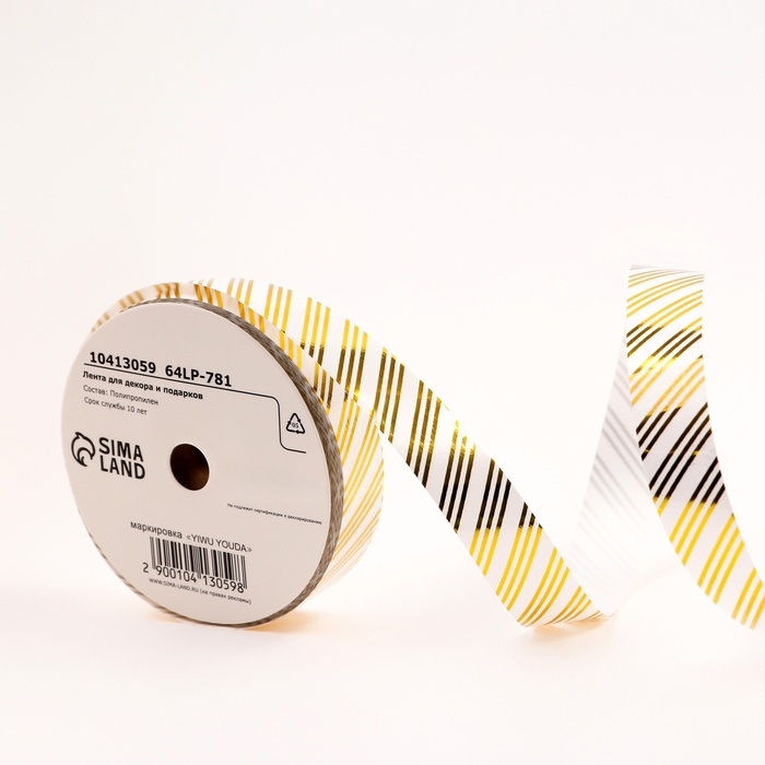 Лента для декора и подарков, "Полосы", золотая, 2 см х 50 м