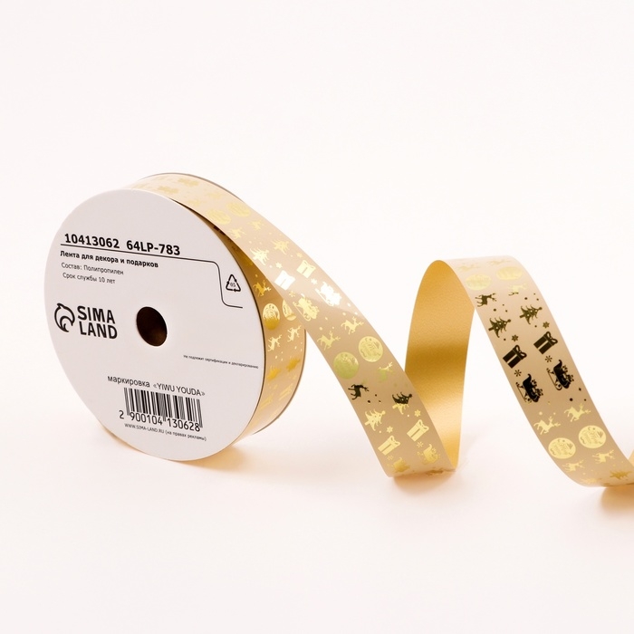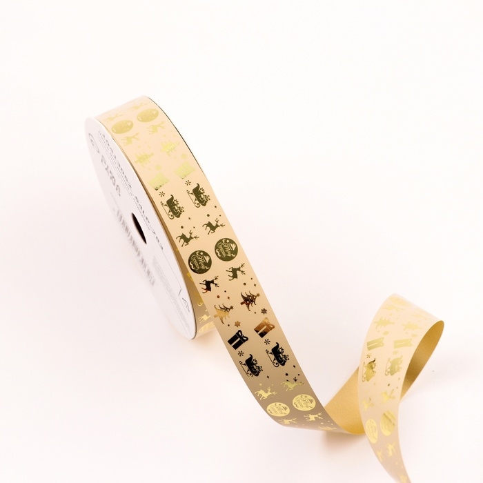 Лента для декора и подарков, "Подарки", золотая, 2 см х 50 м