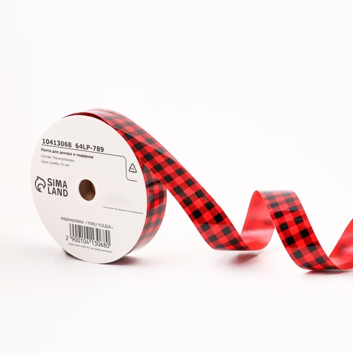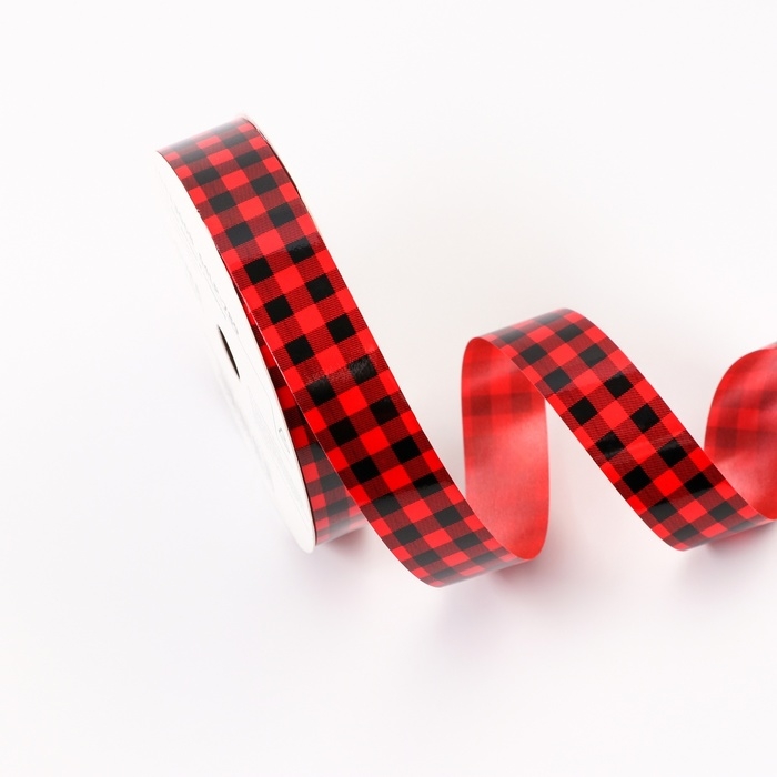 Лента для декора и подарков, "Клетка", красный, 2 см х 50 м