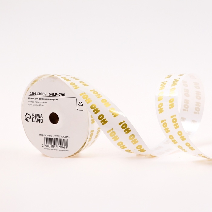 Новый год. Лента для декора и подарков новогодняя, "Хо-Хо-Хо", 3 см х 50 м .