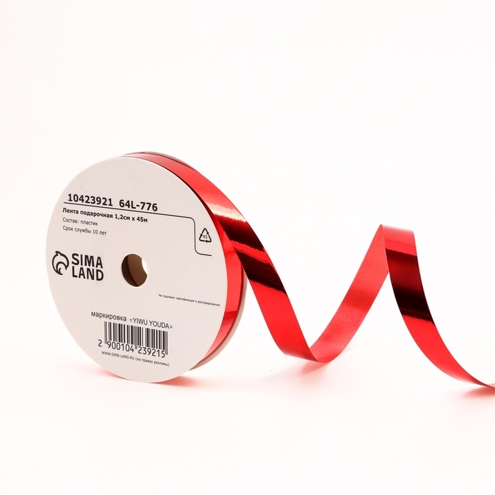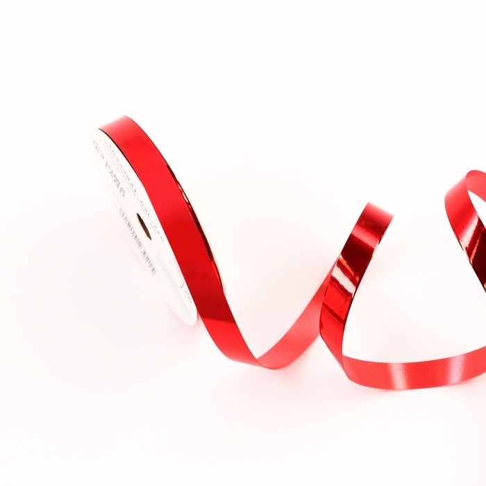 Лента для декора и подарков металлик, 1,2см х 45м, красная