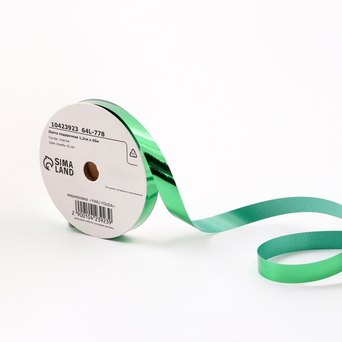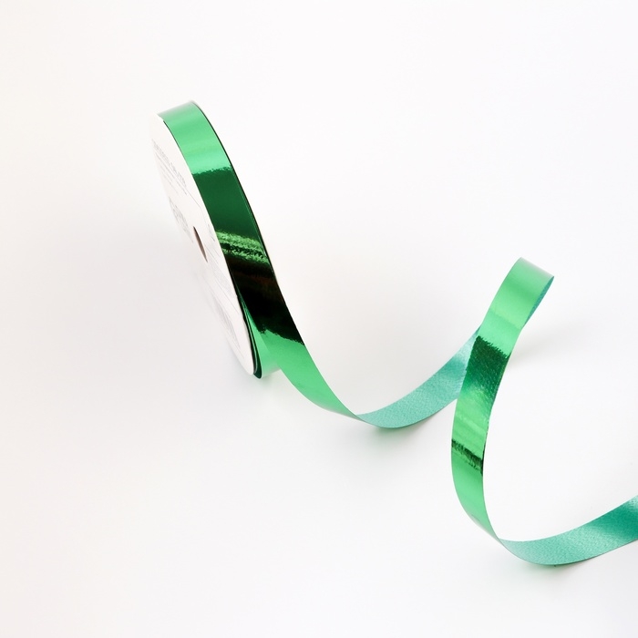 Лента для декора и подарков металлик, 1,2см х 45м, зелёная
