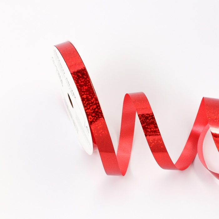 Лента для декора и подарков голография, 1,2см х 45м, красная
