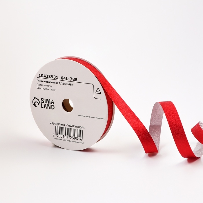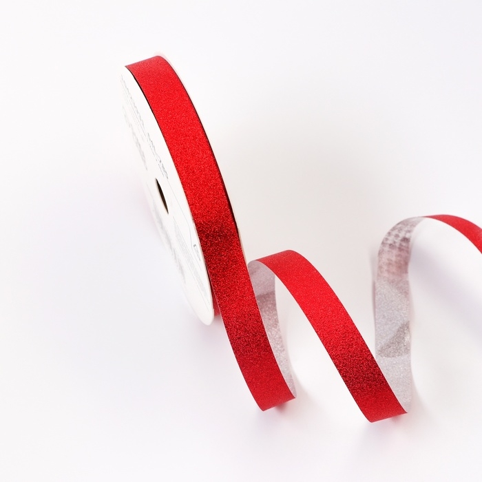 Лента для декора и подарков с глиттером "Тиффани", 1,2см х 45м, красная