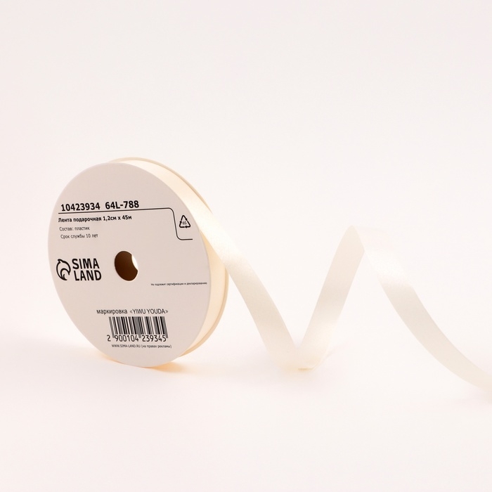 Лента для декора и подарков "Базовая", 1,2см х 45м, белая