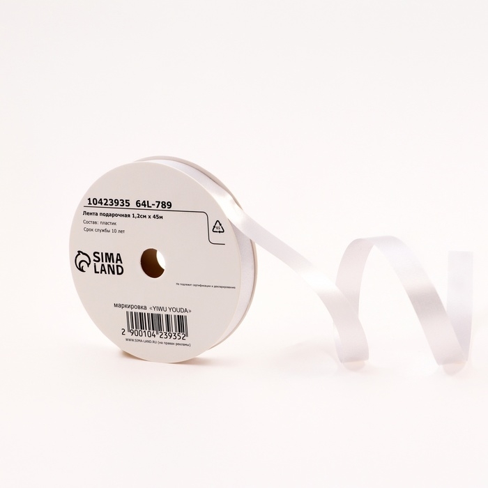 Лента для декора и подарков, белая, 2 см х 45 м
