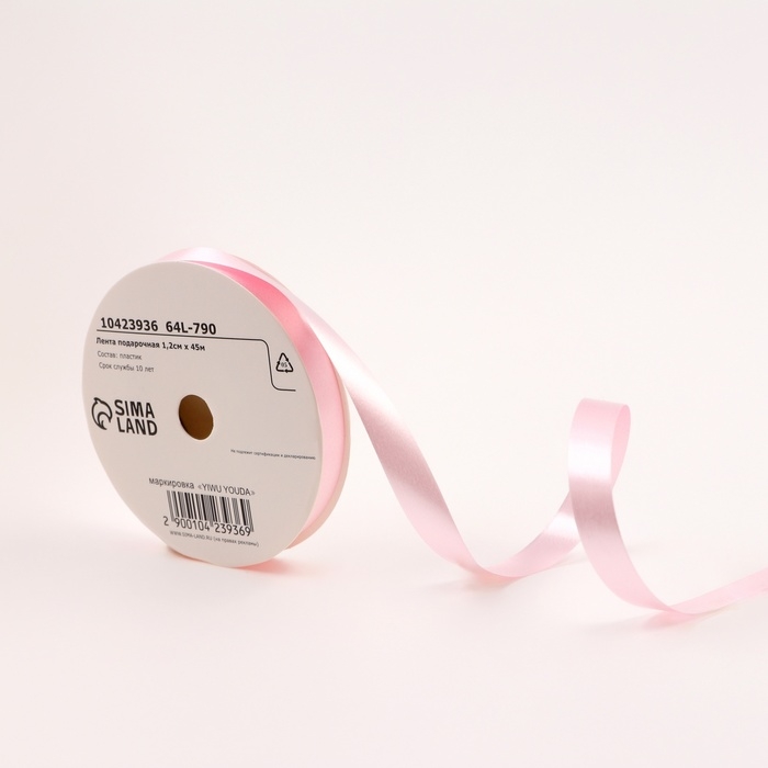 Лента для декора и подарков "Базовая", 1,2см х 45м, розовая