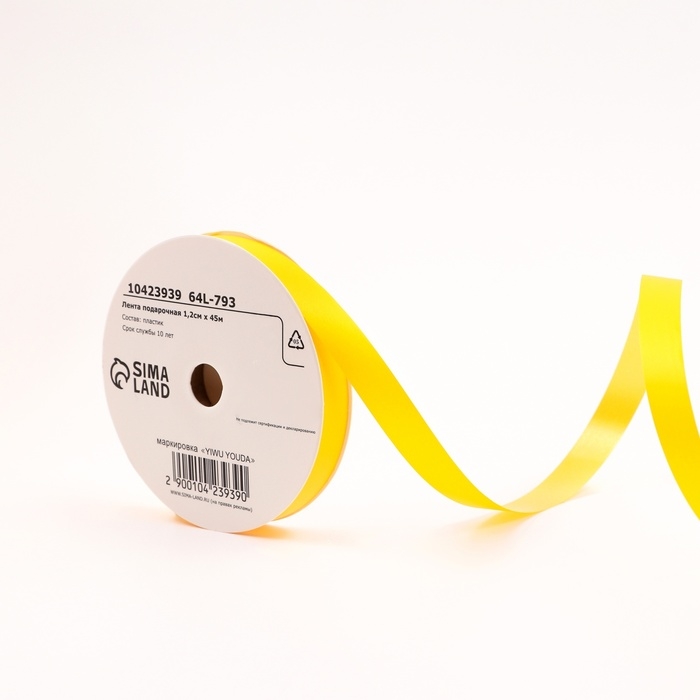 Лента для декора и подарков "Ярко матовая", 1,2см х 45м, желтая