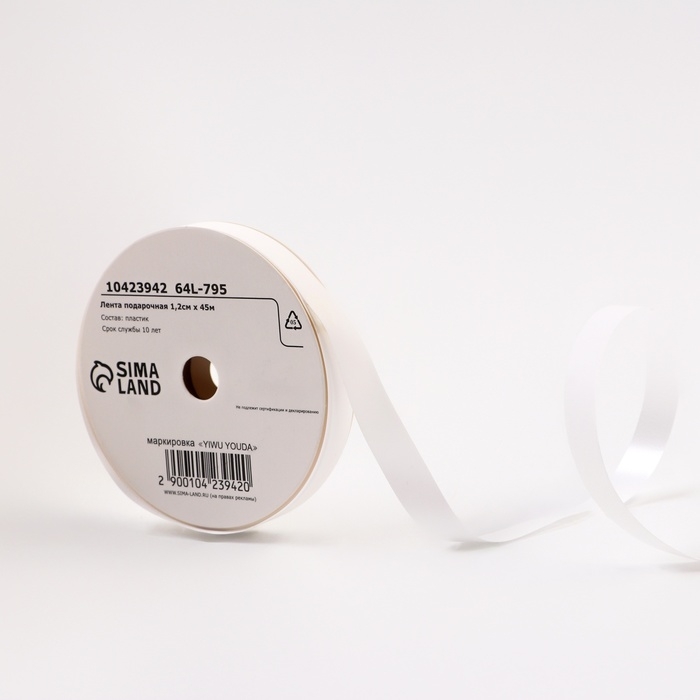 Лента для декора и подарков "Ярко матовая", 1,2см х 45м, белая
