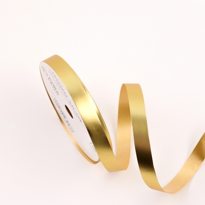 Лента для декора и подарков "Металлик", 1,2см х 45м, золотая