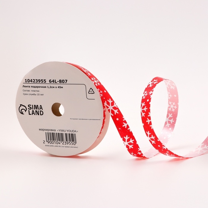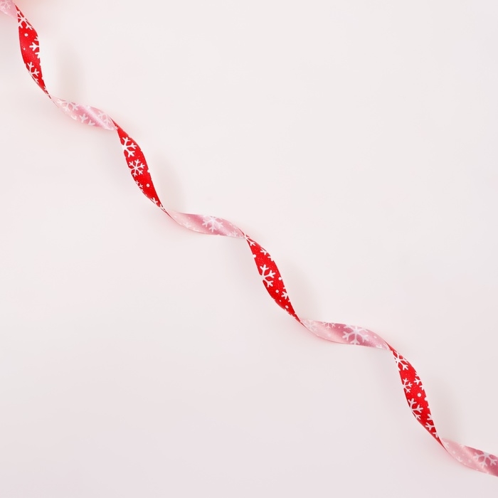 Новый год. Лента для декора и подарков новогодняя "Снежинки", 1,2см х 45м, красная.