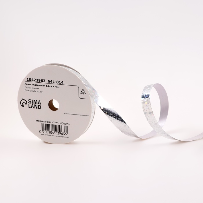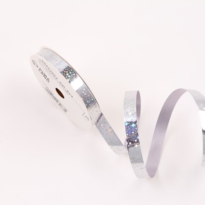 Новый год. Лента для декора и подарков новогодняя новогодняяя "Звездочки глянец", 1,2см х 45м, серебряная.
