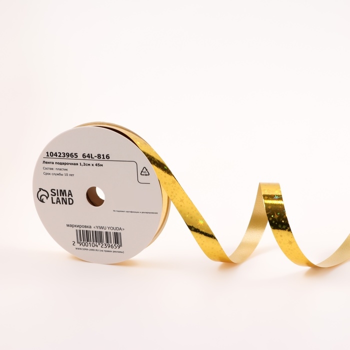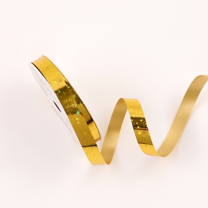 Новый год. Лента для декора и подарков новогодняя новогодняяя "Звездочки глянец", 1,2см х 45м, золотая.