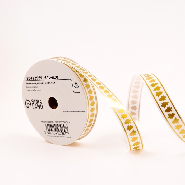 Новый год. Лента для декора и подарков новогодняя новогодняяя "Елочки", 1,5см х 45м.