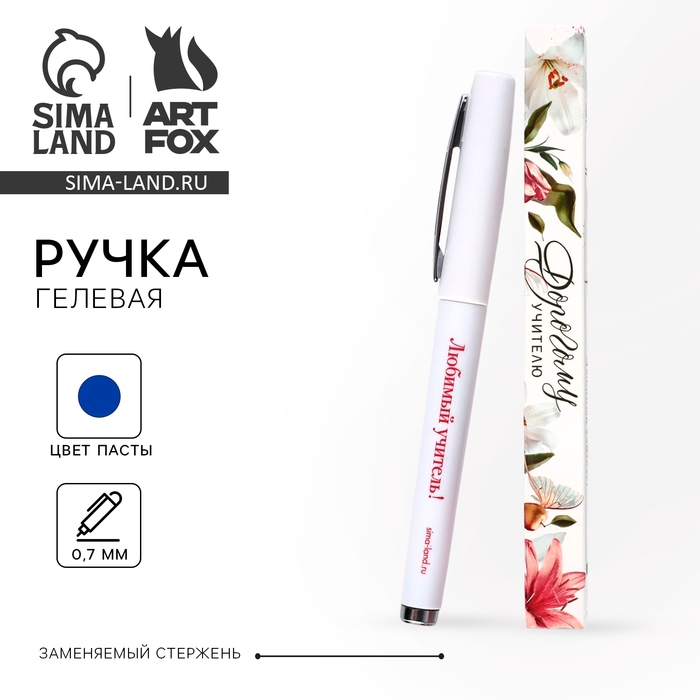 Ручка гелевая с колпачком «Дорогому учителю», пластик, синяя паста 0.7 мм