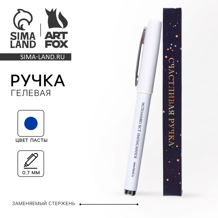 Ручка гелевая с колпачком «Счастливая ручка», пластик, синяя паста 0.7 мм