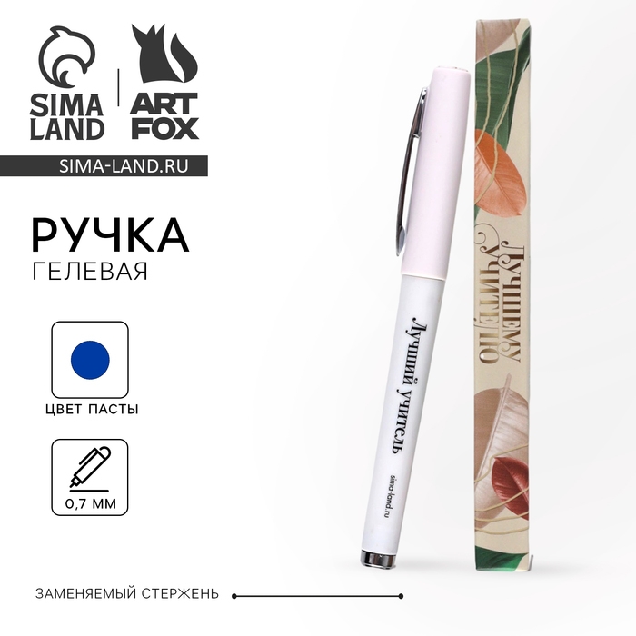 Ручка гелевая с колпачком «Лучшему учителю», пластик, синяя паста 0.7 мм
