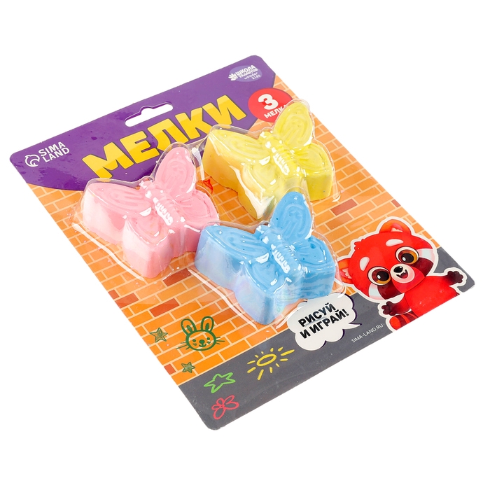 Мелки цветные для рисования на асфальте «Бабочка», 3 шт
