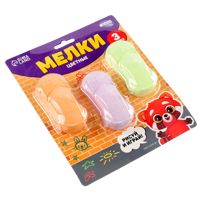 Мелки цветные для рисования на асфальте «Машинка», 3 шт