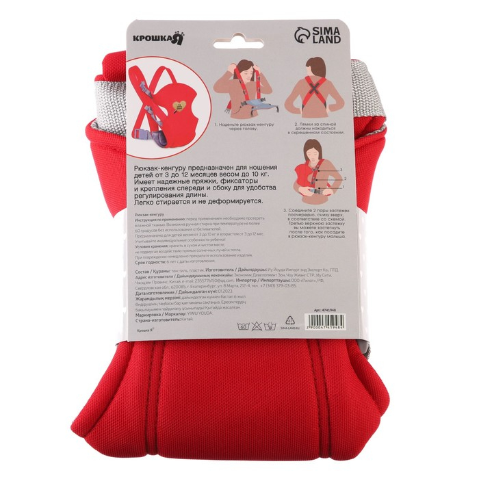 Рюкзак-кенгуру для малыша «Моё сердечко», от 3 до 10 кг., цвет красный, Крошка Я
