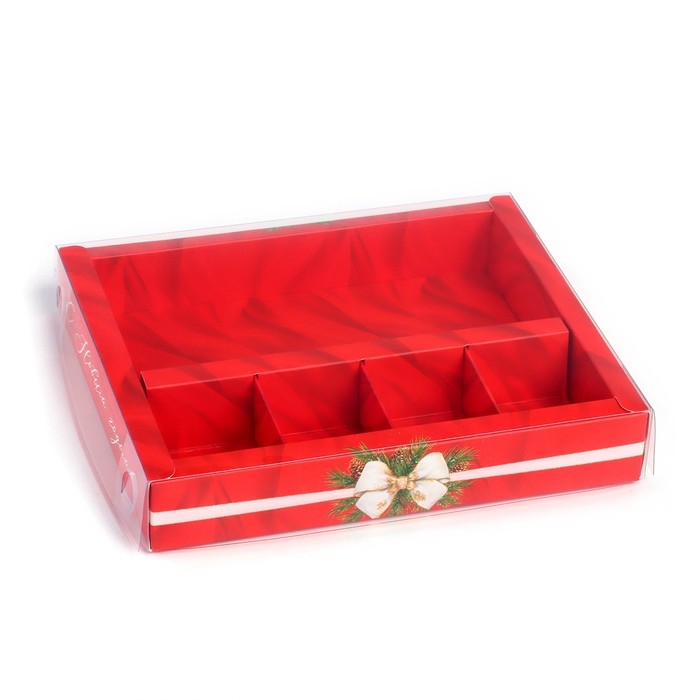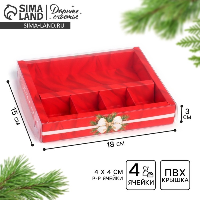 Коробка под 4 конфеты и шоколад с ячейками «Роскошный Новый год» 18 х 15 х 3 см, Новый год
