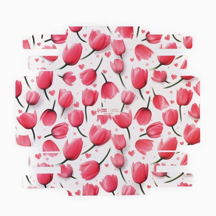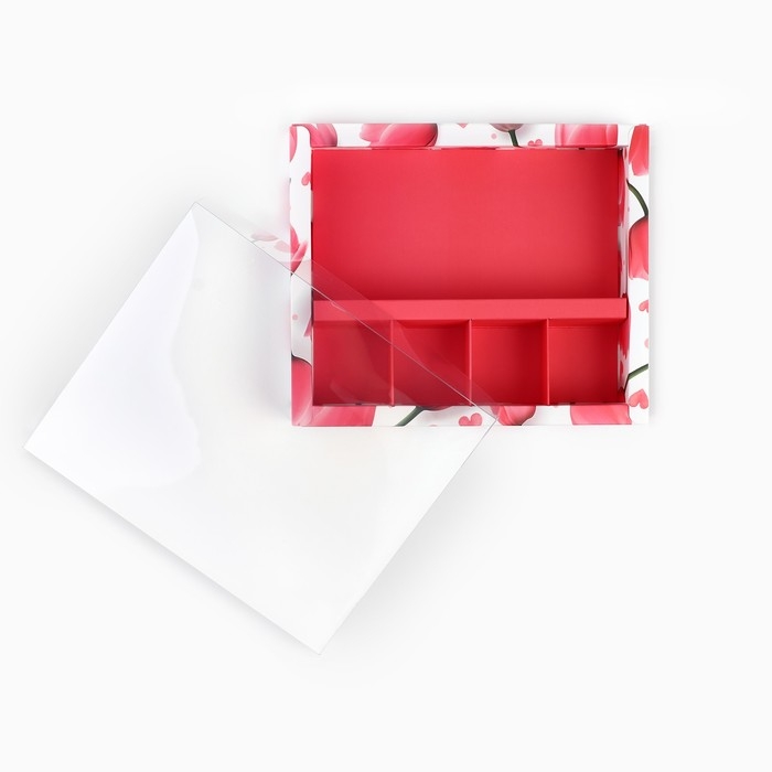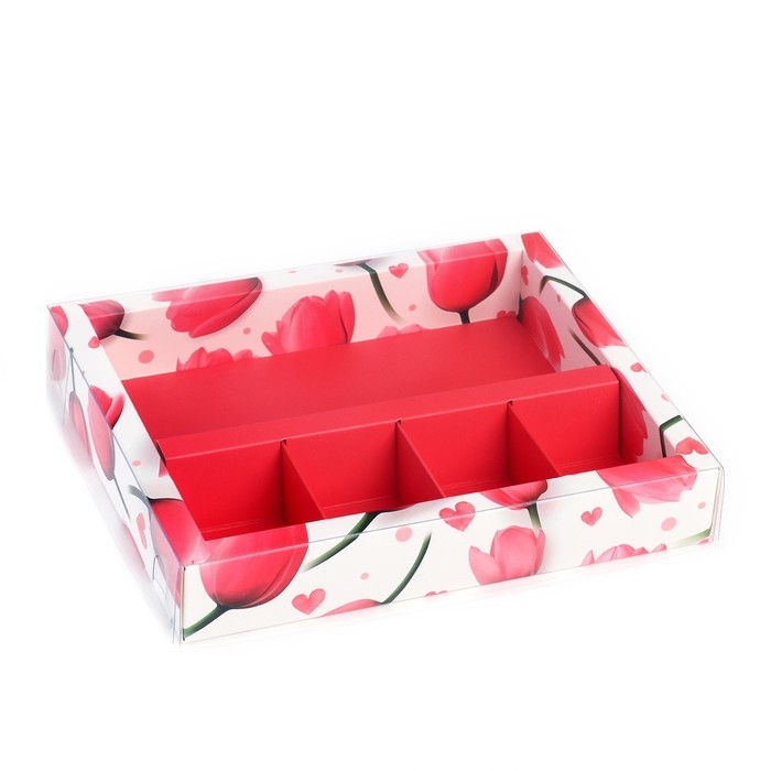 Коробка под 4 конфеты и шоколад с ячейками «Тюльпаны» 18.8 х 15.7 х 3 см