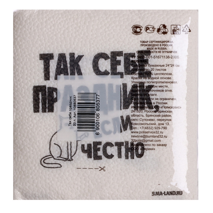 Салфетки бумажные однослойные "Так себе праздник", 24х24 см, набор 20 шт.