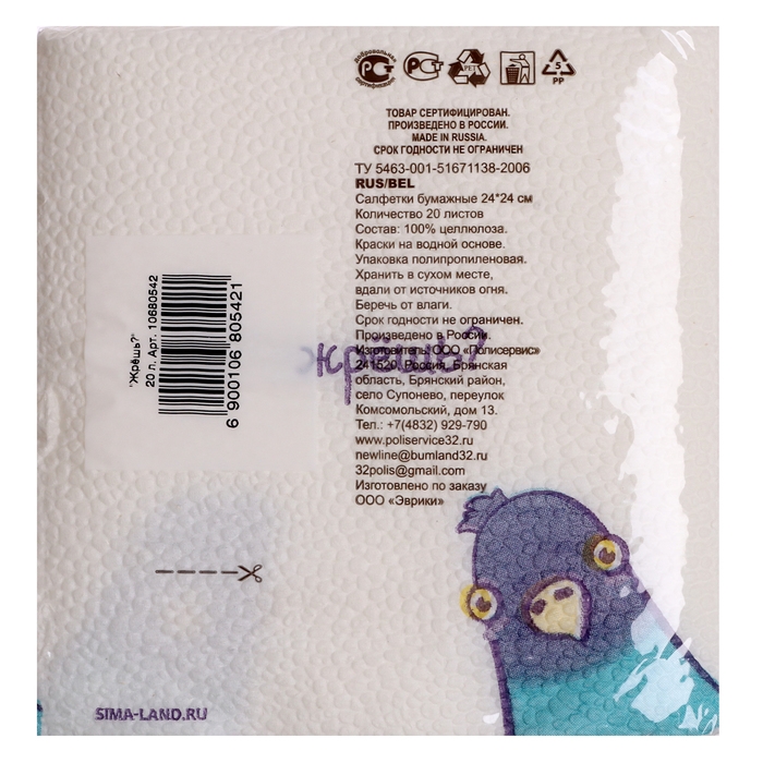 Салфетки бумажные однослойные "Жрёшь?", 24х24 см, набор 20 шт.