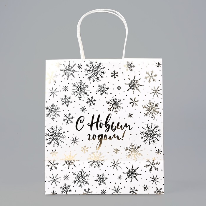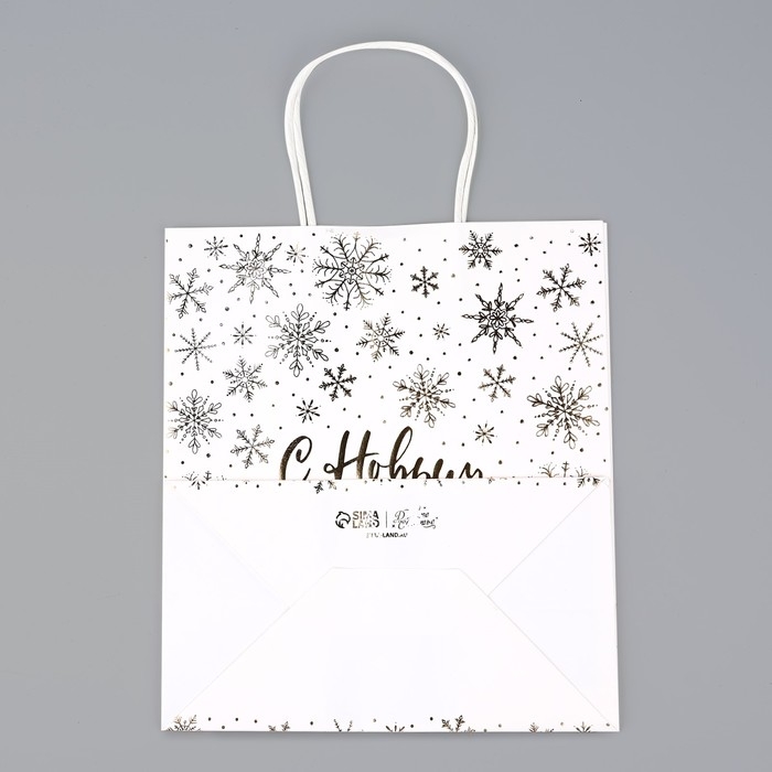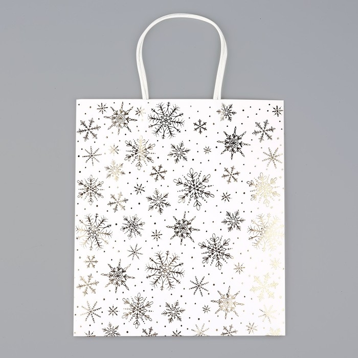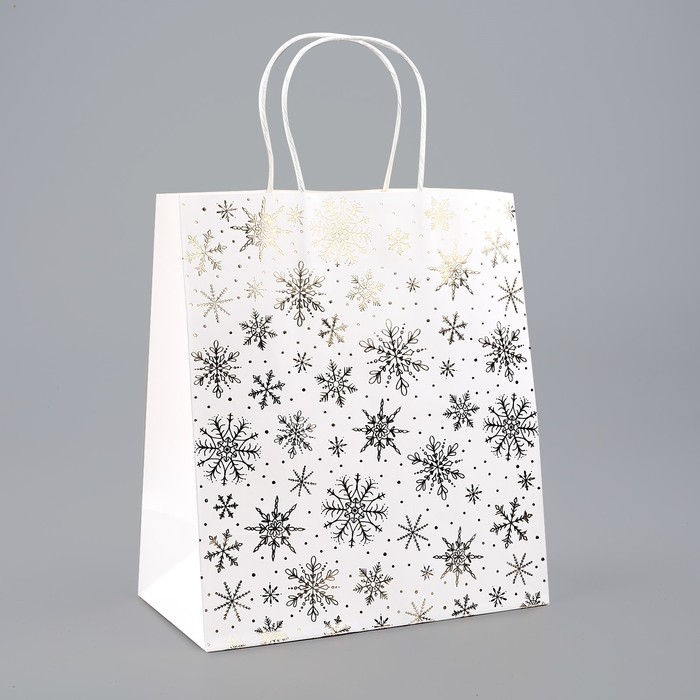 Пакет подарочный новогодний крафтовый «Снежинки», 22 х 25 х 12 см , Новый год