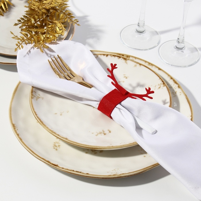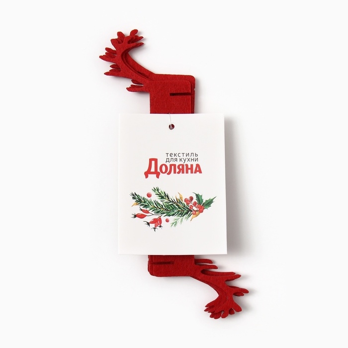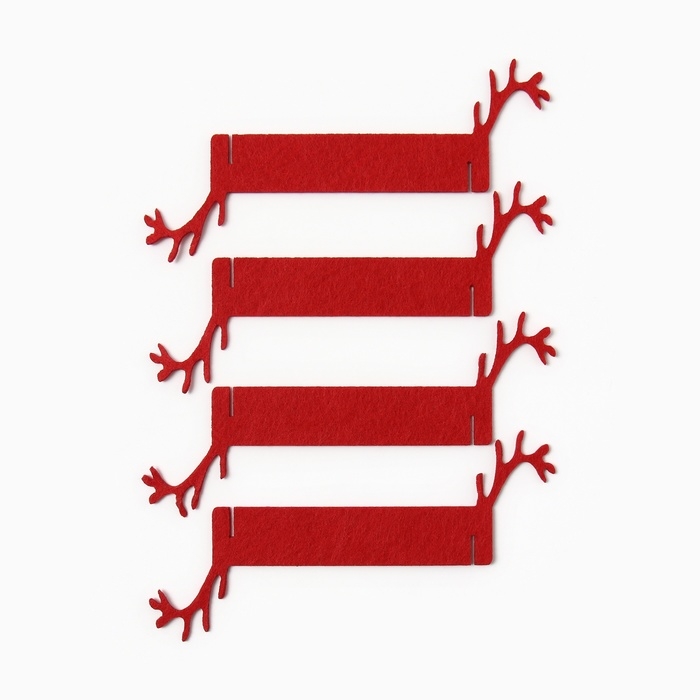 Новый год. Набор декоративных колец для салфеток "Олень" цвет бордо, 4шт 15*5см, 100%п/э фетр