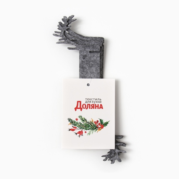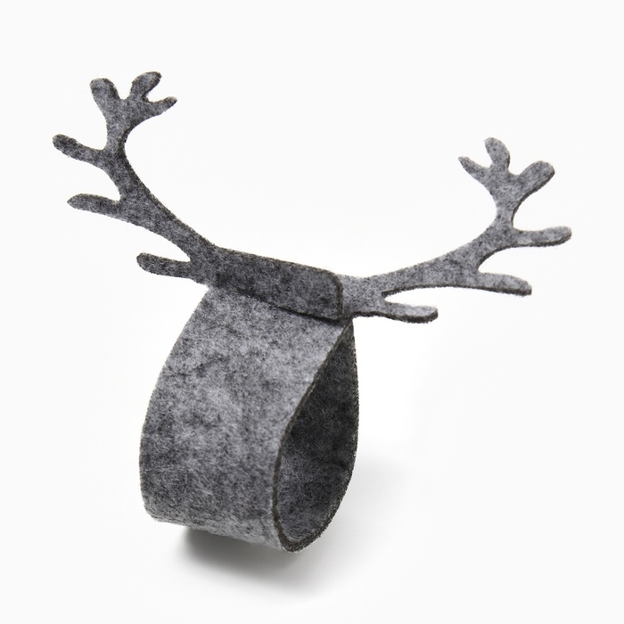 Новый год. Набор декоративных колец для салфеток "Олень" цвет серый, 4шт 15*5см, 100%п/э фетр