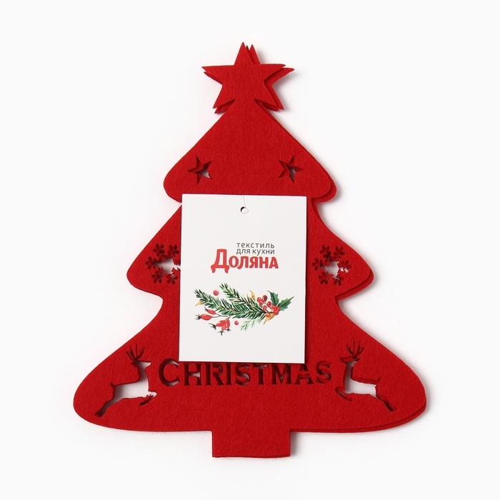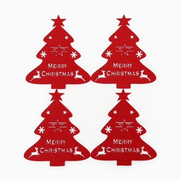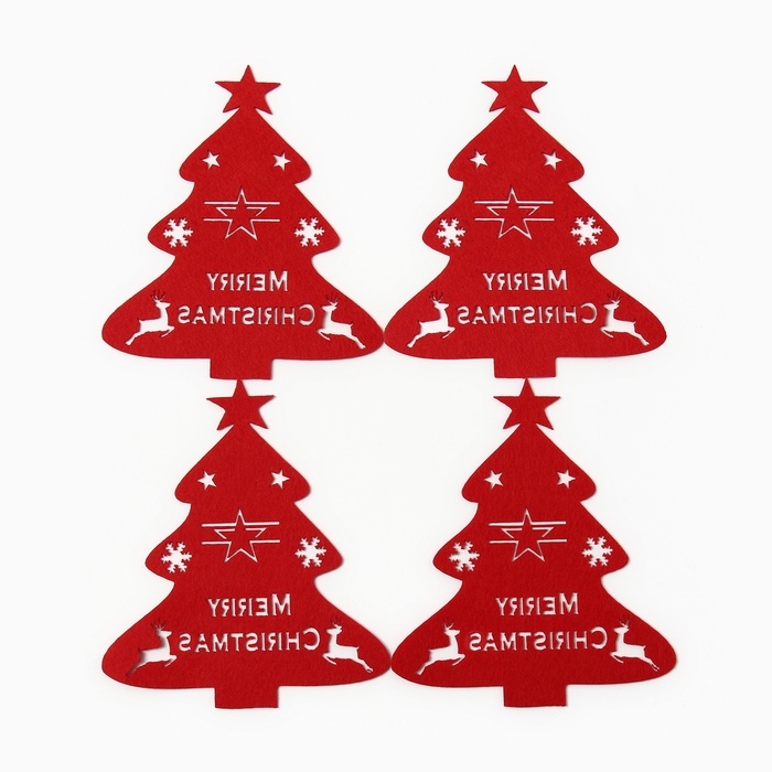 Новый год. Набор для декора столовых предметов "Елка" 4шт цв.красн. 20х17см 100%п/э, фетр