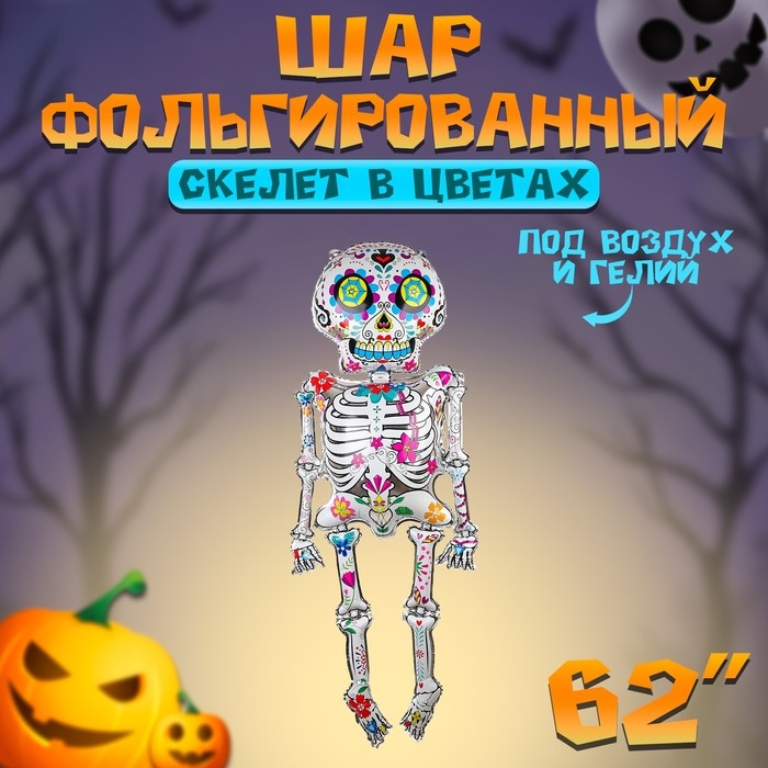 Шар фольгированный 62" «Скелет в цветах» — идеальный выбор для создания атмосферы на Хэллоуин или тематическую вечеринку. Этот шар станет центральным элементом декора, подчёркивающим мистический стиль мероприятия. Будьте внимательны: шар надувается только воздухом.